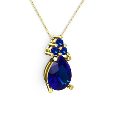 Lab safir 14 ayar altın kolye (40 cm altın rolo zincir)