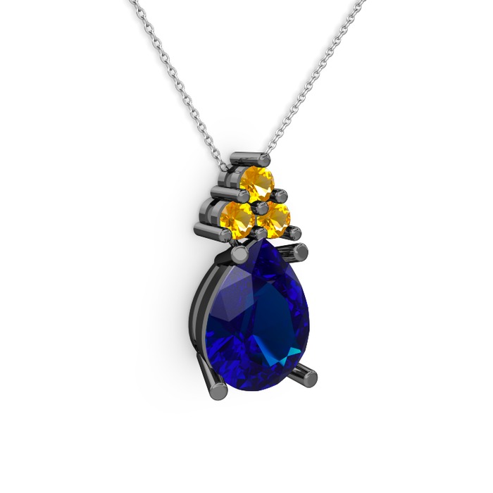 Lab safir ve sitrin 925 ayar siyah rodyum kaplama gümüş kolye (40 cm beyaz altın rolo zincir)