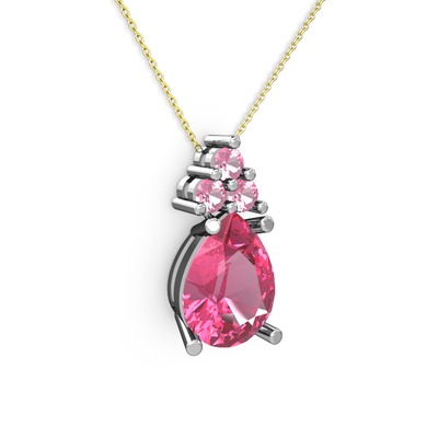 Pembe kuvars 18 ayar beyaz altın kolye (40 cm altın rolo zincir)
