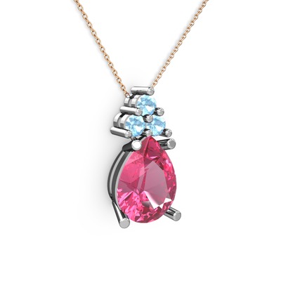 Pembe kuvars ve akuamarin 925 ayar gümüş kolye (40 cm rose altın rolo zincir)