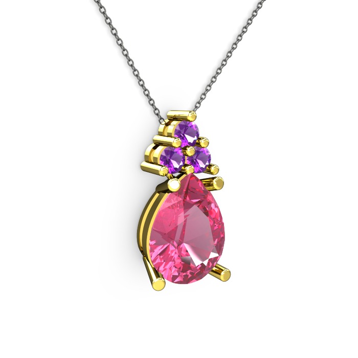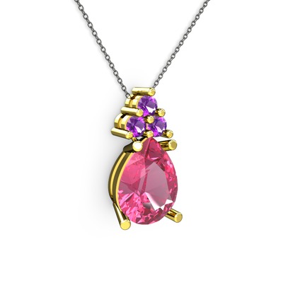 Pembe kuvars ve ametist 14 ayar altın kolye (40 cm gümüş rolo zincir)
