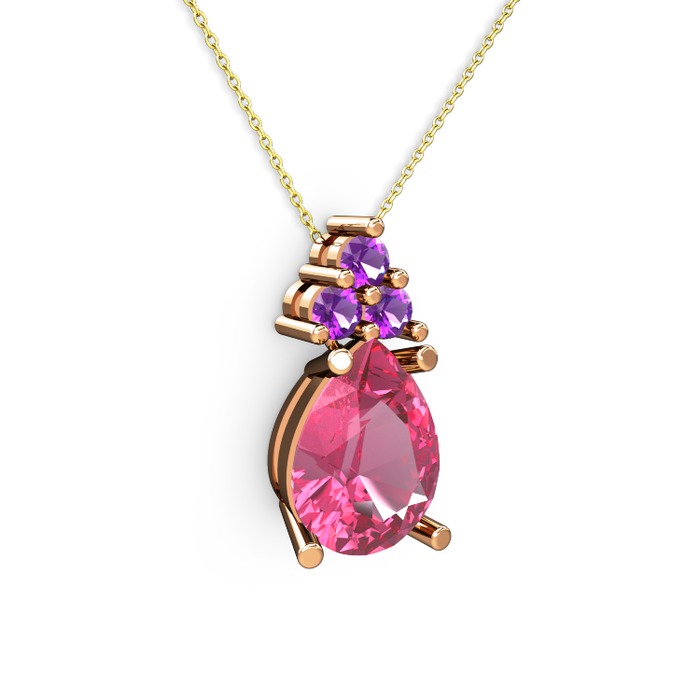 Pembe kuvars ve ametist 8 ayar rose altın kolye (40 cm altın rolo zincir)
