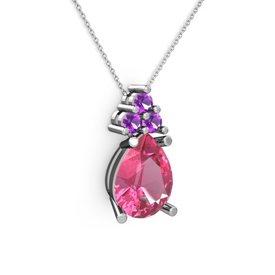 Pembe kuvars ve ametist 925 ayar gümüş kolye (40 cm beyaz altın rolo zincir)