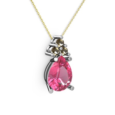 Pembe kuvars ve dumanlı kuvars 925 ayar gümüş kolye (40 cm altın rolo zincir)