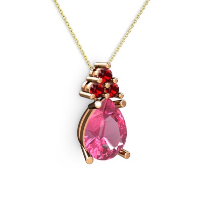 Pembe kuvars ve garnet 14 ayar rose altın kolye (40 cm gümüş rolo zincir)