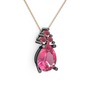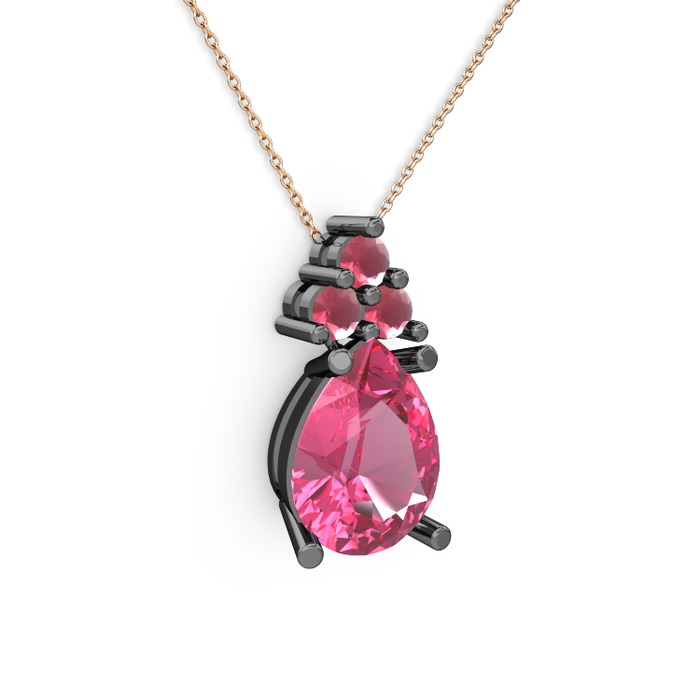 Pembe kuvars ve kök yakut 925 ayar siyah rodyum kaplama gümüş kolye (40 cm gümüş rolo zincir)