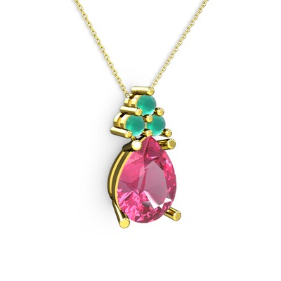 Pembe kuvars ve kök zümrüt 14 ayar altın kolye (40 cm gümüş rolo zincir)