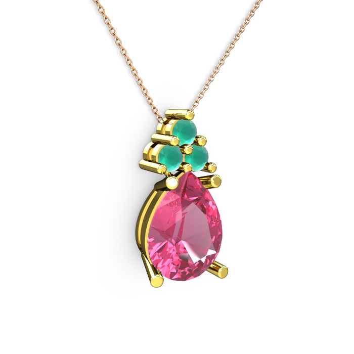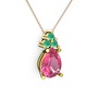 Pembe kuvars ve kök zümrüt 8 ayar altın kolye (40 cm gümüş rolo zincir)