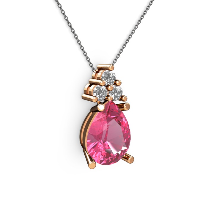 Pembe kuvars ve pırlanta 14 ayar rose altın kolye (0.72 karat, 40 cm gümüş rolo zincir)