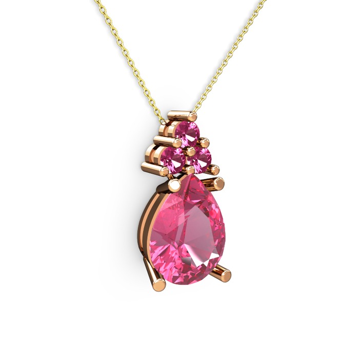 Pembe kuvars ve rodolit garnet 925 ayar rose altın kaplama gümüş kolye (40 cm altın rolo zincir)