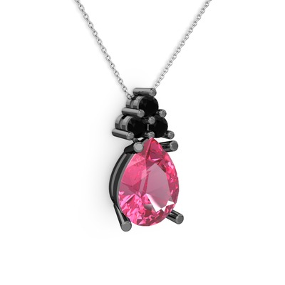 Pembe kuvars ve siyah zirkon 925 ayar siyah rodyum kaplama gümüş kolye (40 cm beyaz altın rolo zincir)