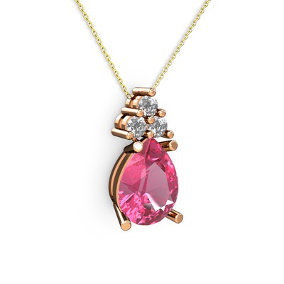 Pembe kuvars ve swarovski 14 ayar rose altın kolye (40 cm gümüş rolo zincir)