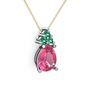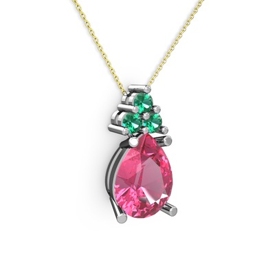 Pembe kuvars ve yeşil kuvars 18 ayar beyaz altın kolye (40 cm altın rolo zincir)