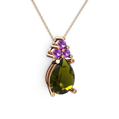 Peridot ve ametist 8 ayar rose altın kolye (40 cm rose altın rolo zincir)