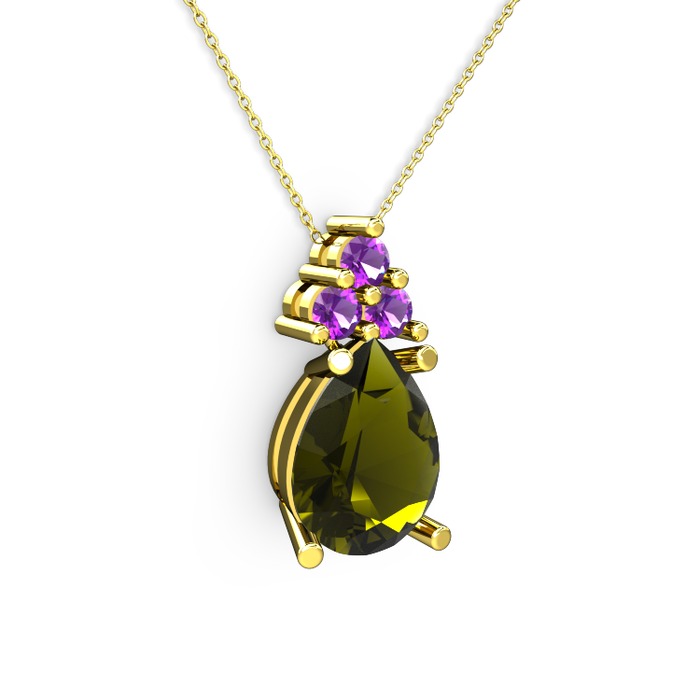 Peridot ve ametist 925 ayar altın kaplama gümüş kolye (40 cm altın rolo zincir)