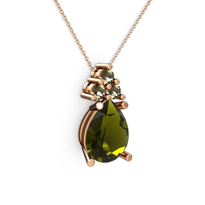 Peridot ve dumanlı kuvars 8 ayar rose altın kolye (40 cm gümüş rolo zincir)
