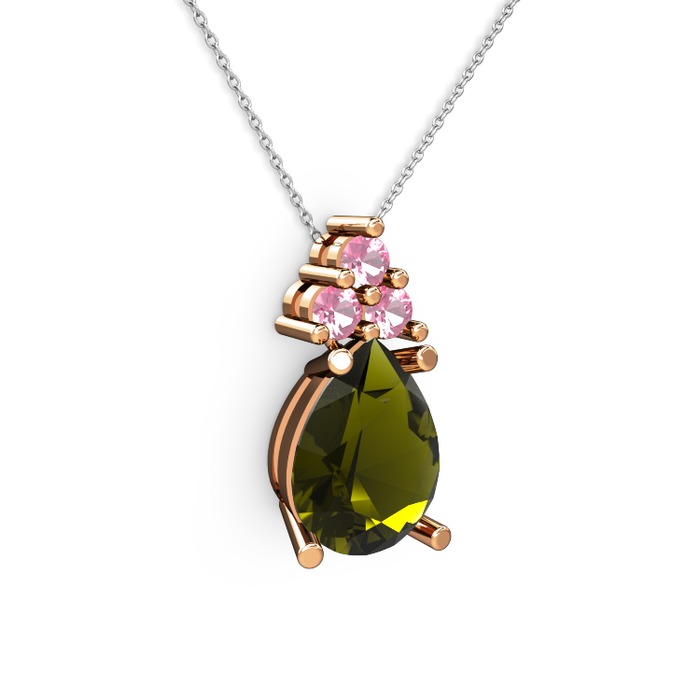 Peridot ve pembe kuvars 14 ayar rose altın kolye (40 cm beyaz altın rolo zincir)