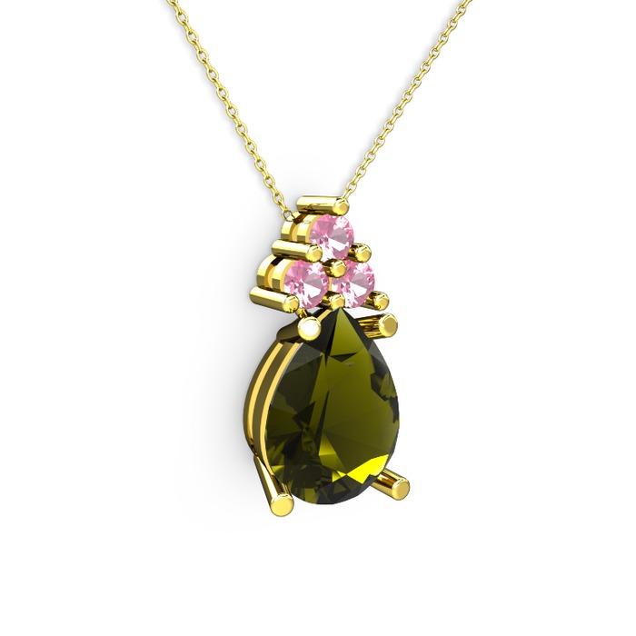 Peridot ve pembe kuvars 18 ayar altın kolye (40 cm gümüş rolo zincir)
