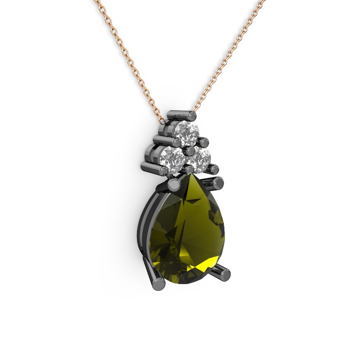 Peridot ve pırlanta 925 ayar siyah rodyum kaplama gümüş kolye (0.72 karat, 40 cm rose altın rolo zincir)