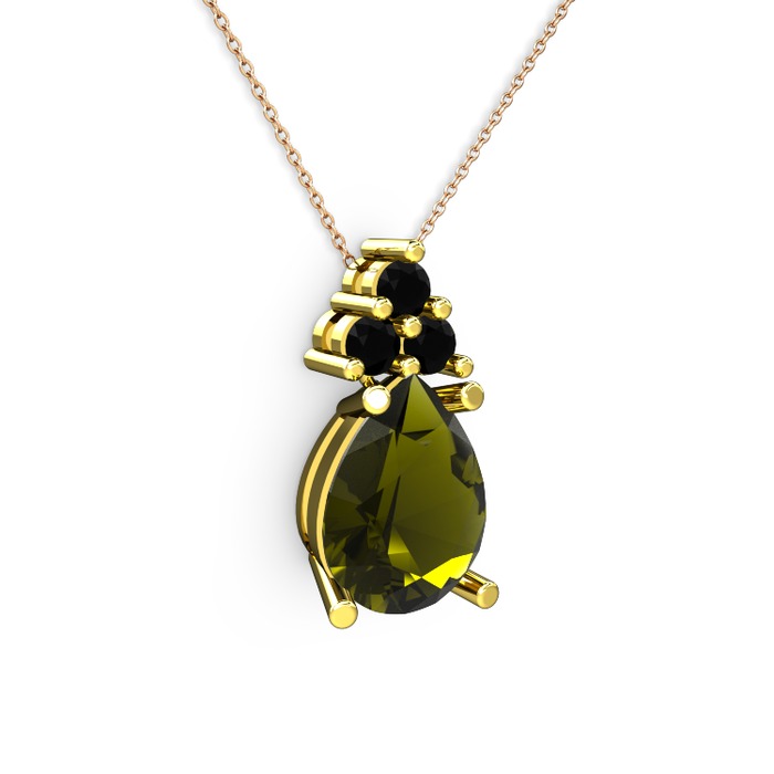 Peridot ve siyah zirkon 8 ayar altın kolye (40 cm gümüş rolo zincir)