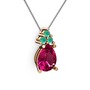 Rodolit garnet ve kök zümrüt 14 ayar rose altın kolye (40 cm gümüş rolo zincir)