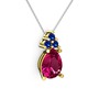 Rodolit garnet ve lab safir 925 ayar altın kaplama gümüş kolye (40 cm gümüş rolo zincir)