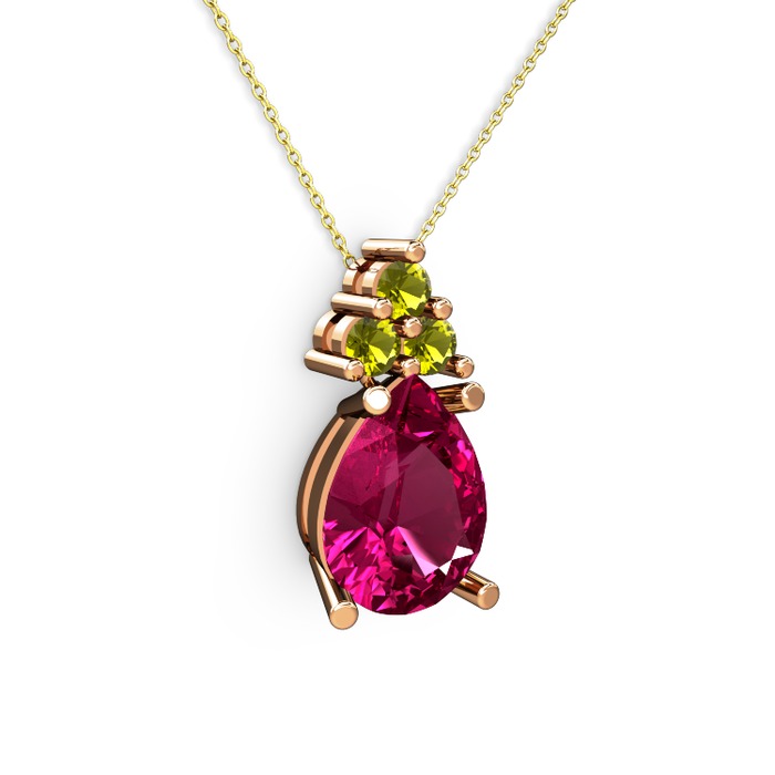 Rodolit garnet ve peridot 14 ayar rose altın kolye (40 cm gümüş rolo zincir)