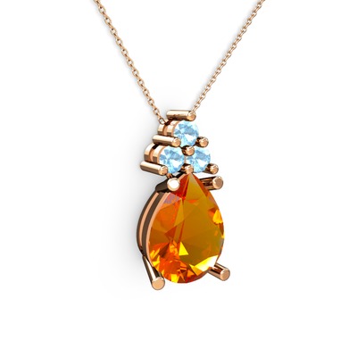 Sitrin ve akuamarin 18 ayar rose altın kolye (40 cm rose altın rolo zincir)