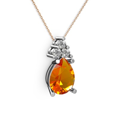 Sitrin ve beyaz zirkon 8 ayar beyaz altın kolye (40 cm gümüş rolo zincir)