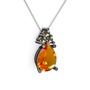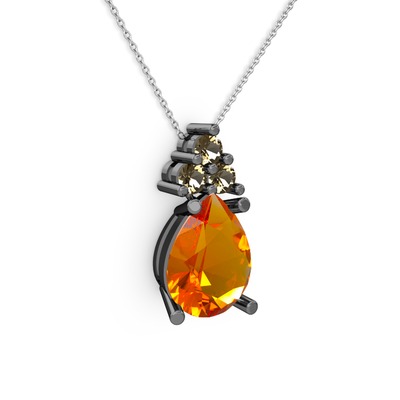 Sitrin ve dumanlı kuvars 925 ayar siyah rodyum kaplama gümüş kolye (40 cm beyaz altın rolo zincir)
