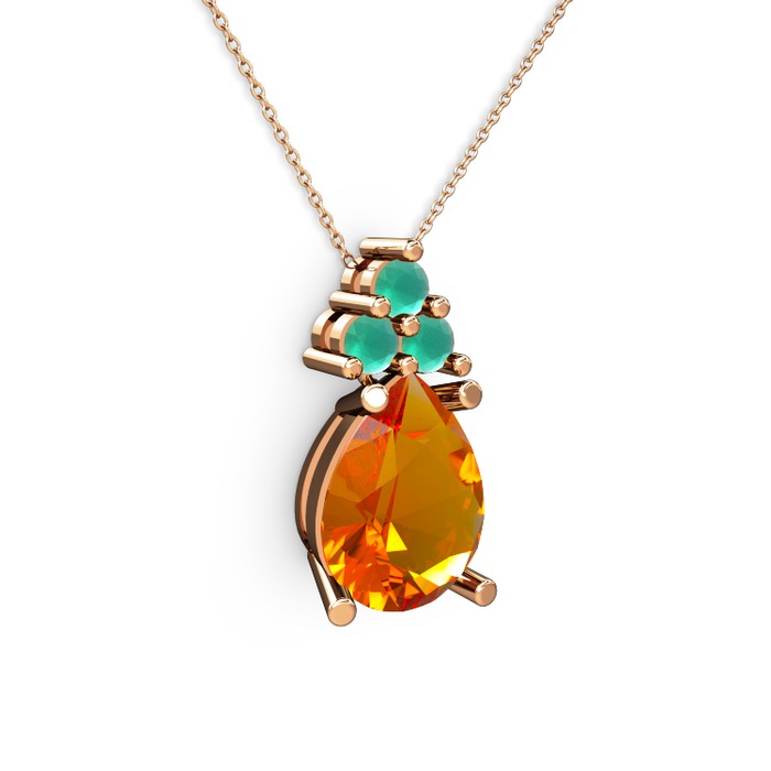 Sitrin ve kök zümrüt 18 ayar rose altın kolye (40 cm rose altın rolo zincir)