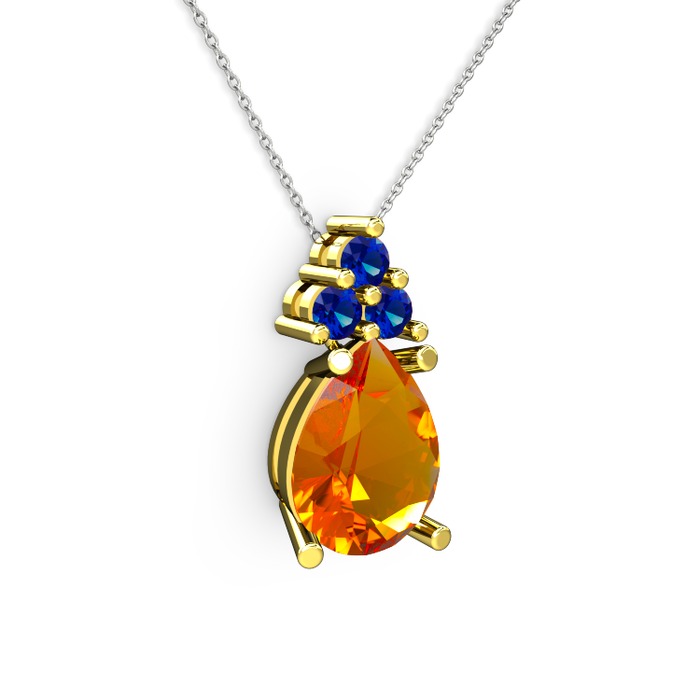 Sitrin ve lab safir 18 ayar altın kolye (40 cm gümüş rolo zincir)