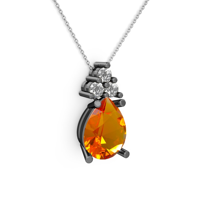 Sitrin ve swarovski 925 ayar siyah rodyum kaplama gümüş kolye (40 cm gümüş rolo zincir)