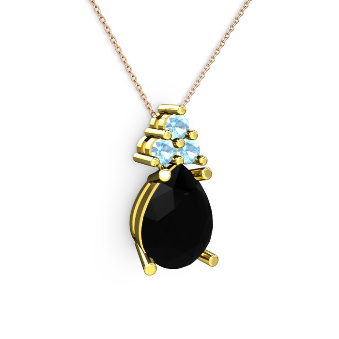 Siyah zirkon ve akuamarin 8 ayar altın kolye (40 cm rose altın rolo zincir)