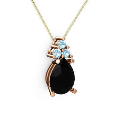 Siyah zirkon ve akuamarin 925 ayar rose altın kaplama gümüş kolye (40 cm altın rolo zincir)