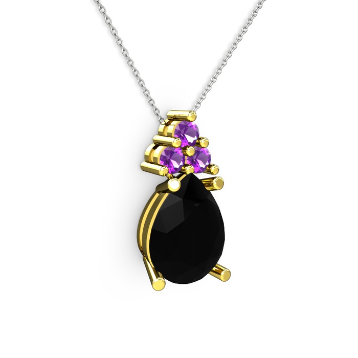 Siyah zirkon ve ametist 14 ayar altın kolye (40 cm beyaz altın rolo zincir)