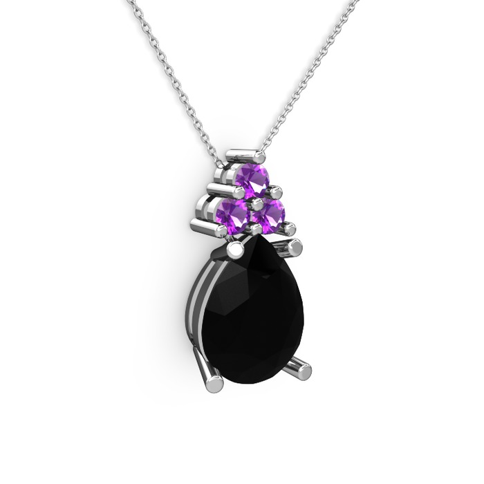 Siyah zirkon ve ametist 925 ayar gümüş kolye (40 cm beyaz altın rolo zincir)