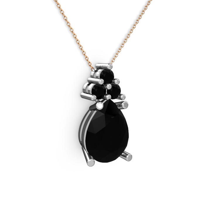 Siyah zirkon 925 ayar gümüş kolye (40 cm rose altın rolo zincir)