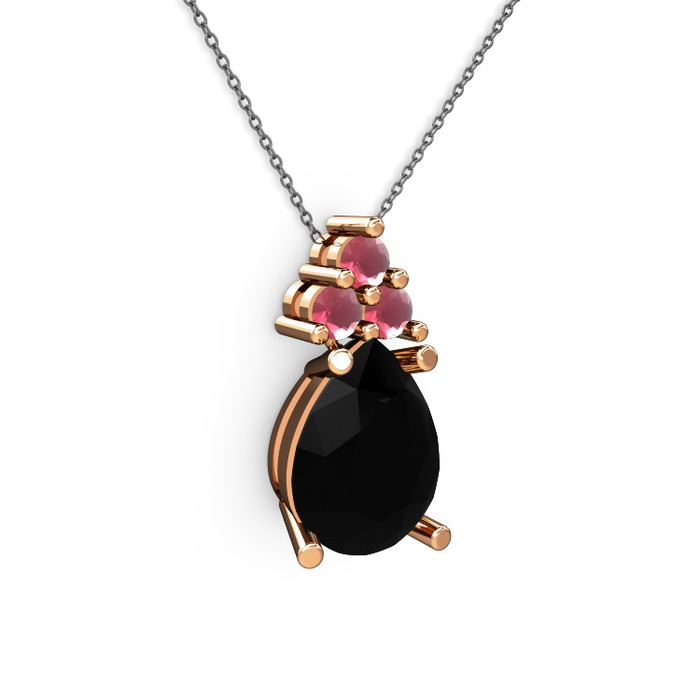 Siyah zirkon ve kök yakut 8 ayar rose altın kolye (40 cm gümüş rolo zincir)