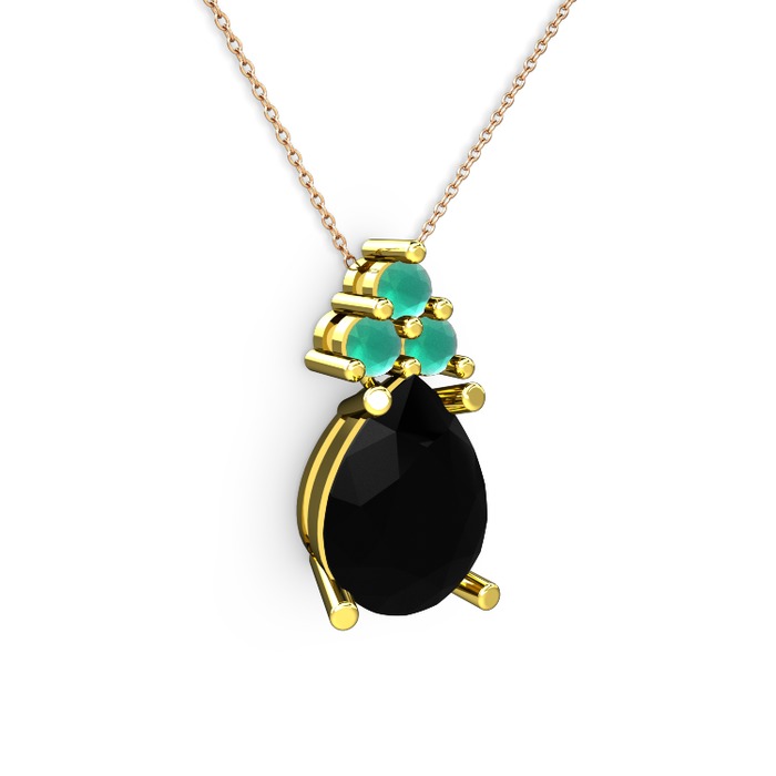 Siyah zirkon ve kök zümrüt 14 ayar altın kolye (40 cm gümüş rolo zincir)