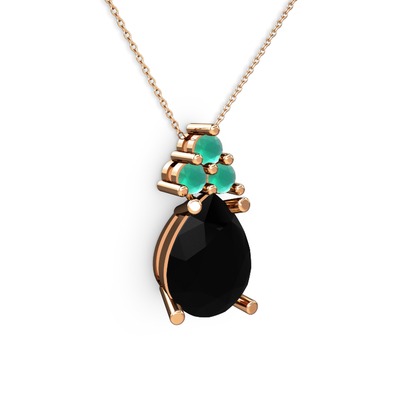 Siyah zirkon ve kök zümrüt 14 ayar rose altın kolye (40 cm rose altın rolo zincir)