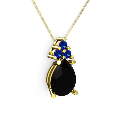 Siyah zirkon ve lab safir 925 ayar altın kaplama gümüş kolye (40 cm gümüş rolo zincir)