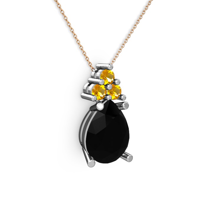 Siyah zirkon ve sitrin 14 ayar beyaz altın kolye (40 cm rose altın rolo zincir)