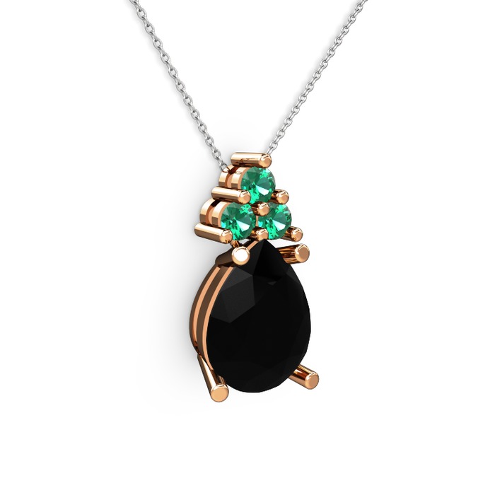 Siyah zirkon ve yeşil kuvars 18 ayar rose altın kolye (40 cm gümüş rolo zincir)