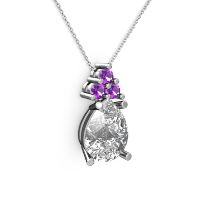 Swarovski ve ametist 925 ayar gümüş kolye (40 cm beyaz altın rolo zincir)