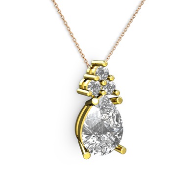 Swarovski ve beyaz zirkon 14 ayar altın kolye (40 cm rose altın rolo zincir)
