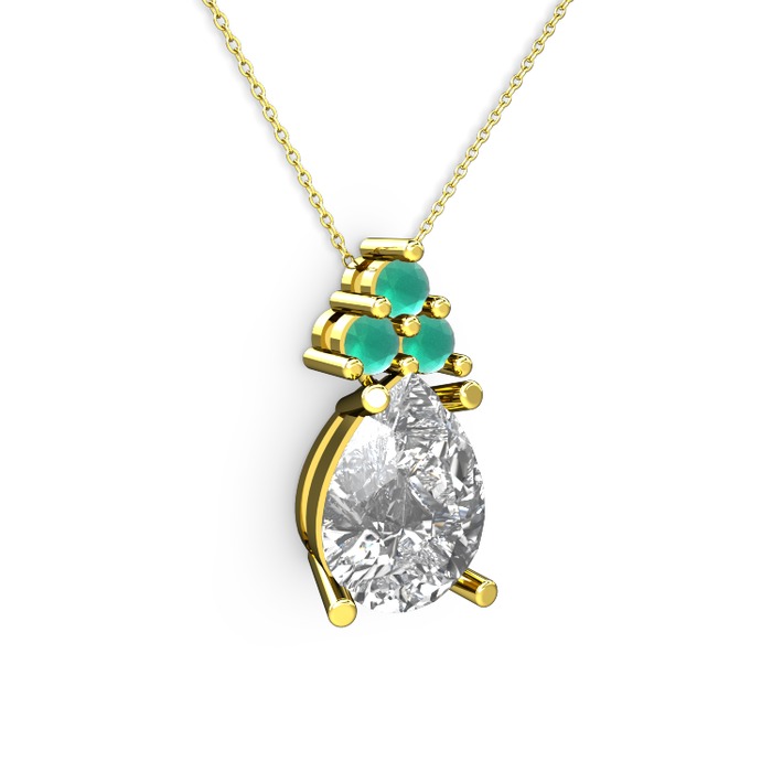 Swarovski ve kök zümrüt 14 ayar altın kolye (40 cm gümüş rolo zincir)