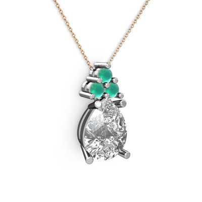 Swarovski ve kök zümrüt 925 ayar gümüş kolye (40 cm gümüş rolo zincir)
