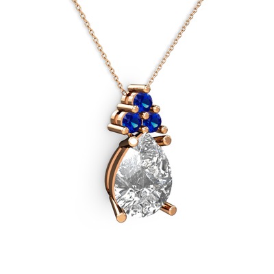 Swarovski ve lab safir 18 ayar rose altın kolye (40 cm rose altın rolo zincir)