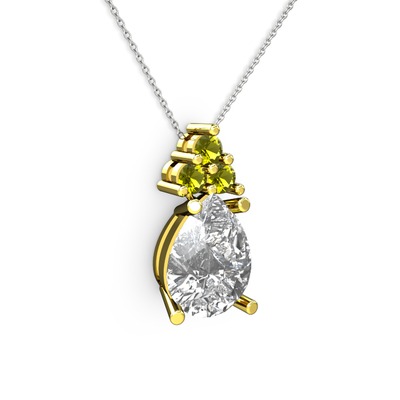 Swarovski ve peridot 8 ayar altın kolye (40 cm gümüş rolo zincir)